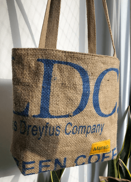 Explore the Mini Cafetera Tote Bag by MANSO, a compact and stylish accessory made from recycled coffee sacks. Perfect for daily essentials with a unique touch of Colombian tradition.